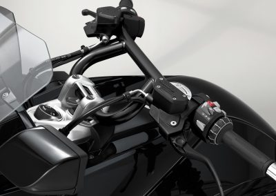 Como debe ser una Bagger, con una presencia imponente y creada para deslizarse. El color «Blackstorm Metallic» en combinación con los diferentes tonos de negro confieren a esta Bagger su forma y la hacen imponente y confiada al mismo tiempo.